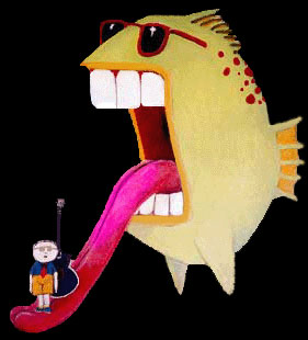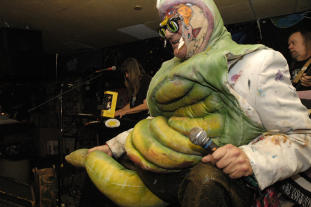 costume leads a rock band. He's singing - hollering, he'd say - swaying